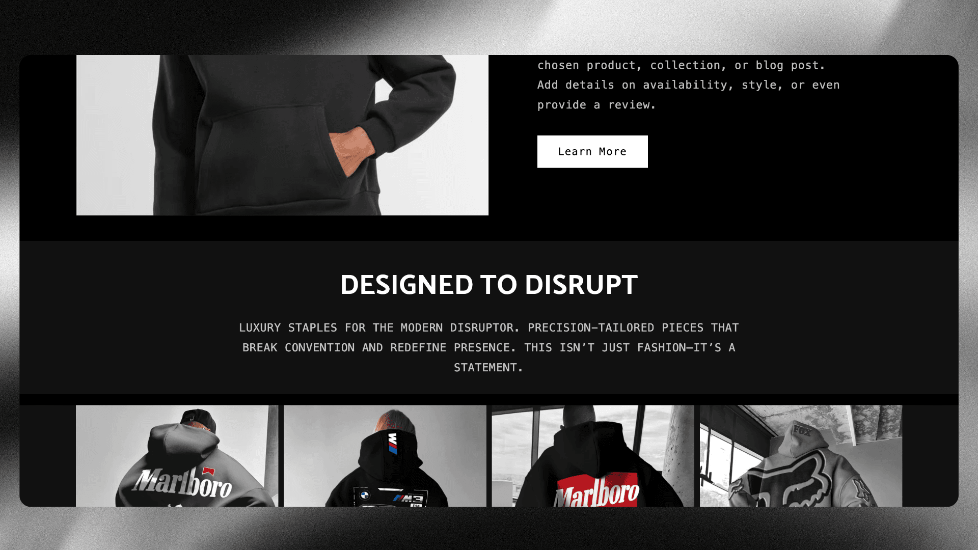 Distortion’s previous website didn’t capture the brand’s edgy identity. Product displays were unengaging, navigation was confusing, and the overall experience failed to reflect the bold and modern vibe of the hoodies, limiting sales and brand connection.